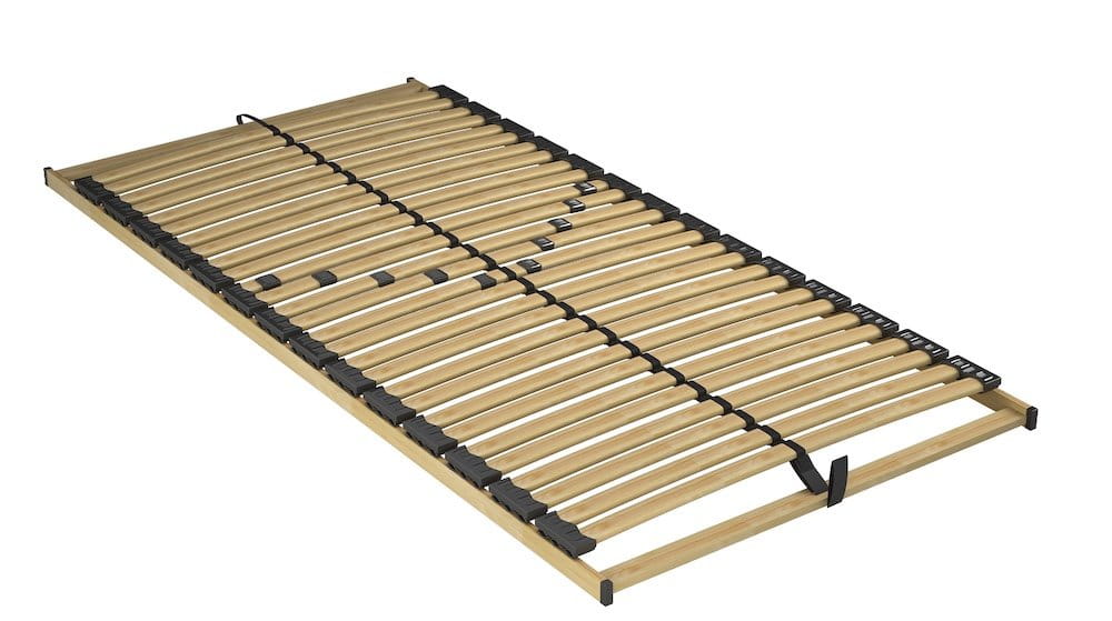 28 elastycznych listew, dodatkowa regulacja twardości. Stelaż w kartonie do samodzielnego montażu lub w wersji zmontowanej. Możliwość wykonania stelaża w nietypowym wymiarze.