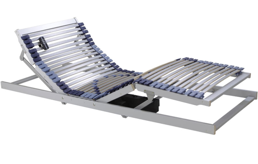 Listwy gięte tego stelaża zostały wykonane z drewna bukowego, klejonego warstwowo, pokrytego folią dekoracyjną w kolorze srebrnym. Listwy są osadzone w potrójnych, elastycznych uchwytach na ramie stelaża. Jego zaletą jest płynna regulacja elektryczna wysokości podgłówka i podnóżka. Siłownik jest zasilany bezpiecznym napięciem stałym 24V. Funkcja standby wprowadza układ zasilacza w stan czuwania, ogranicza pobór energii elektrycznej i daje możliwość opuszczenia przy braku zasilania. W części środkowej ma dodatkową regulację twardości. Stelaż trioflex de Luxe jest dostępny w wersji z pilotem bezprzewodowym. Stelaż może być sterowany za pomocą smartfona lub tabletu. Sprzedawany w wersji zmontowanej. Istnieje możliwość zamówienia nietypowego rozmiaru stelaża.