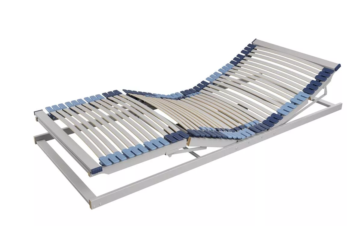 Listwy osadzone w potrójnych elastycznych uchwytach na ramie stelaża, wzmocnione pasem dla lepszego rozłożenia ciężaru ciała.