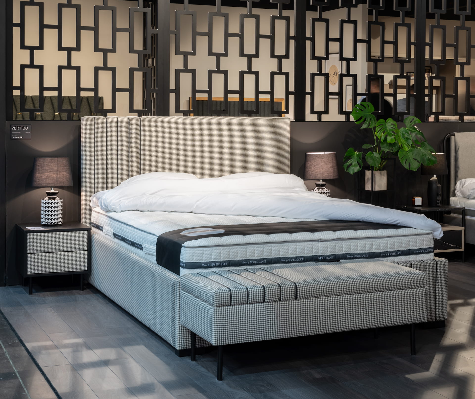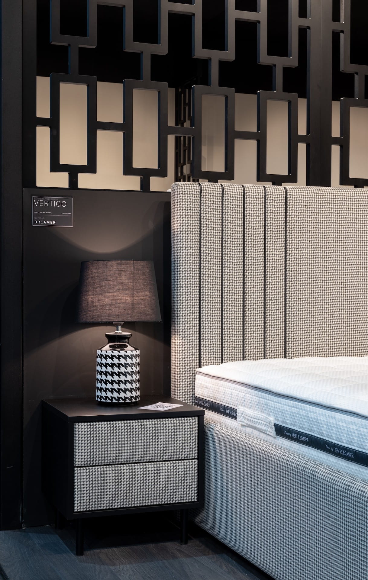 Do stolika polecamy łóżko, oraz ławkę z kolekcji Vertigo