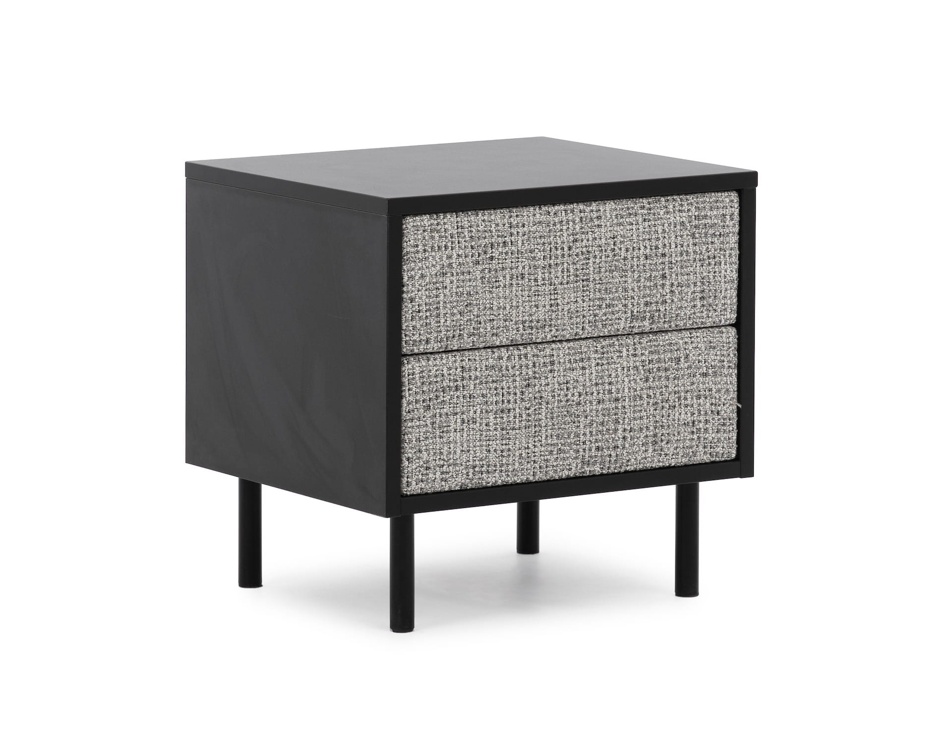 wykonany z płyty w kolorze czarnym w połączeniu z tapicerowanymi frontami szuflad.Stolik idealnie pasuje do pozostałych mebli z kolekcji Vertigo: łóżka oraz ławki.