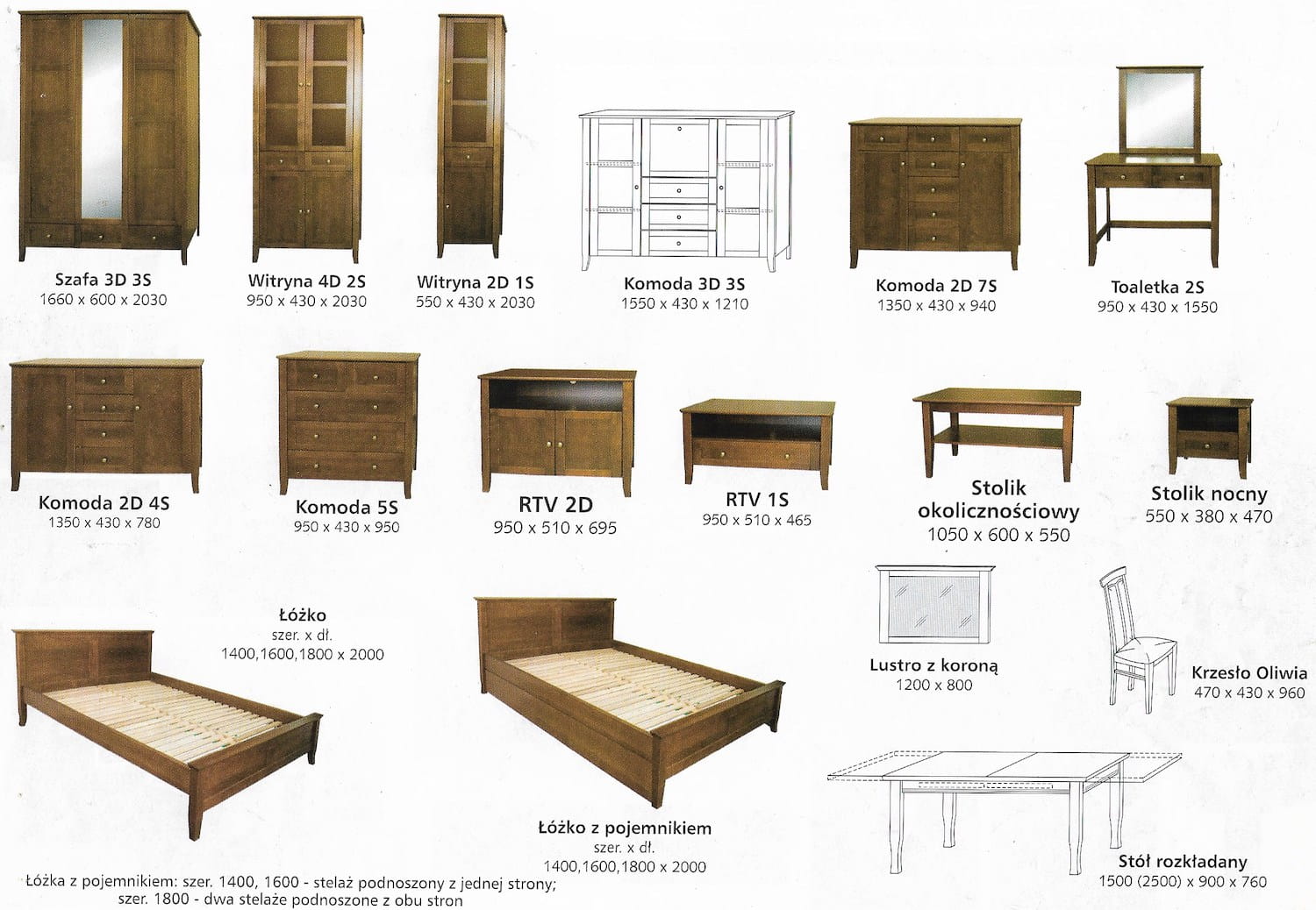 - Komoda 3D/3S: szer. 155 cm; wys. 121 cm; gł. 43 cm