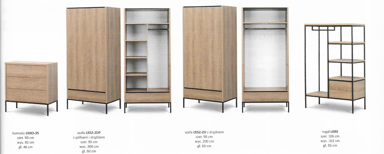 • komoda LKKO-3S w rozmiarze: szer. 90 cm / gł. 46 cm / wys. 85 cm