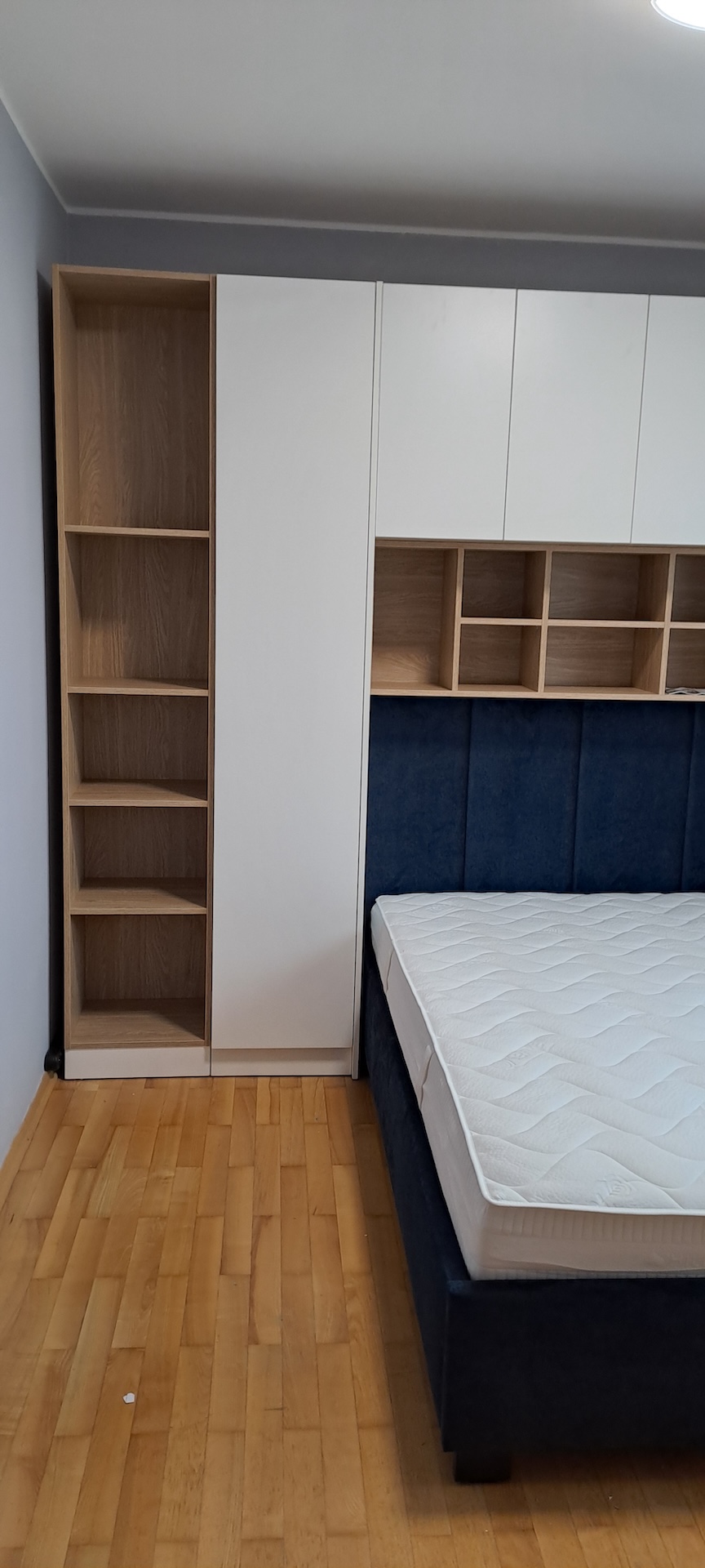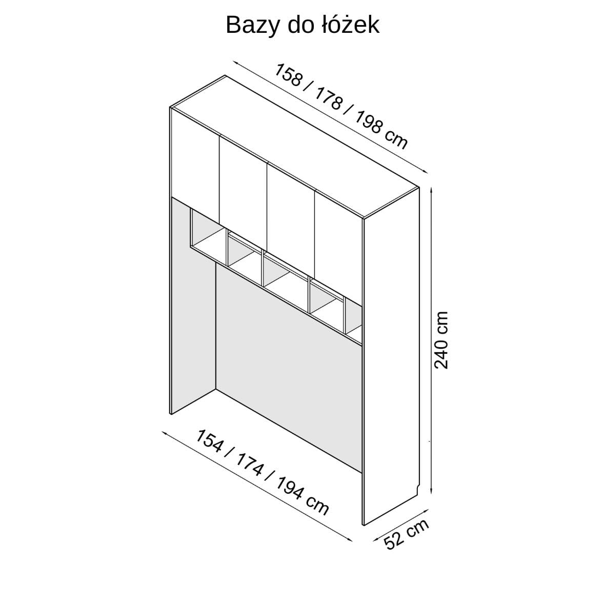 *Jeśli posiadasz własne łóżko i chcesz do niego dokupić oferowaną zabudowę, zmierz dobrze jego całkowitą szerokość oraz wysokość wezgłowia, a następnie porównaj z podaną powyżej szerokością i wysokością wnęki, aby upewnić się czy łóżko będzie pasować. Na zdjęciach za wezgłowiem widoczna jest specjalnie docięta płyta pod kolor półki nad wezgłowiem, którą można domówić indywidualnie po wcześniejszym kontakcie.