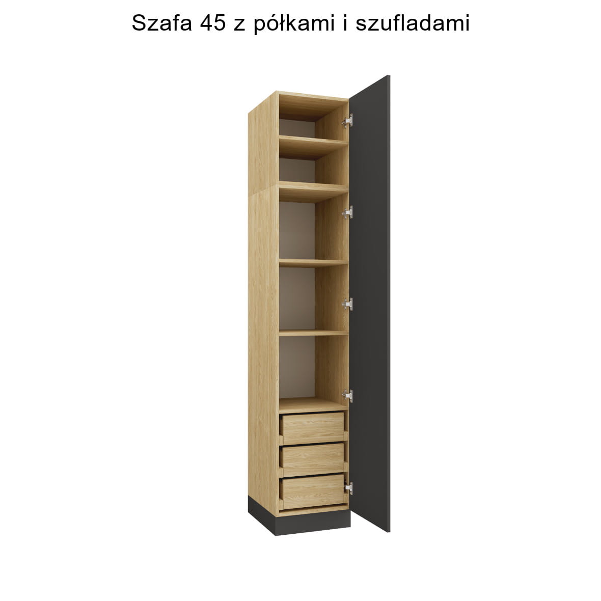 - szafa jednodrzwiowa z szufladami wewnętrznymi i półkami, szer. 45 cm