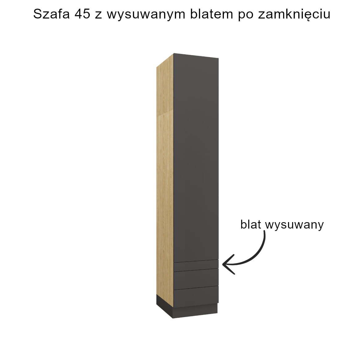- szafa jednodrzwiowa z szufladami, drążkiem i wysuwanym blatem, szer. 45 cm