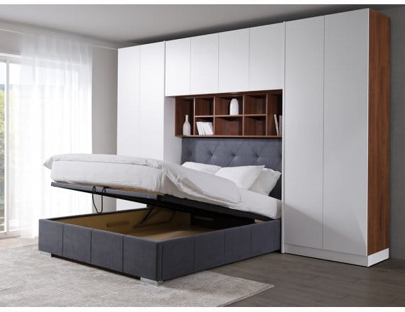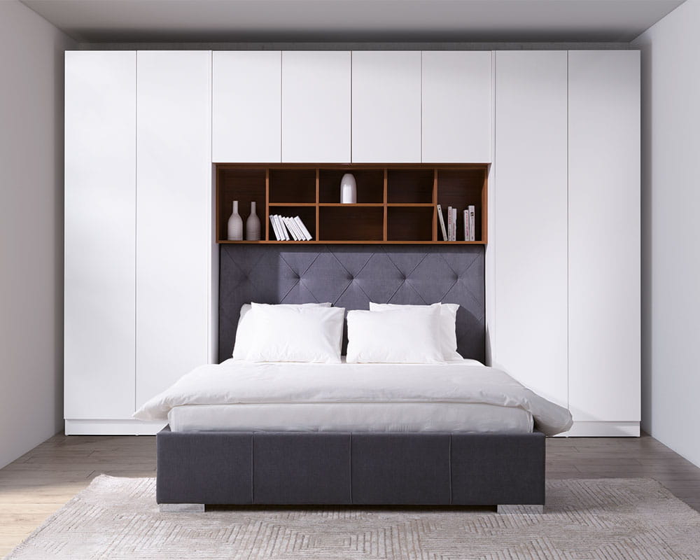 Kolekcja jest szczególnie przydatna w przypadku wąskich i długich sypialni, które często spotykamy w nowoczesnych mieszkaniach. Dzięki zabudowie Sleep Varia przestrzeń jest wykorzystywana w sposób maksymalny – łóżko umieszczone w ciągu szaf, regałów i nadstawek stanowi doskonałe rozwiązanie, które nie tylko optymalizuje przestrzeń, ale także nadaje wnętrzu wyjątkowego charakteru. System może być montowany z bliskim połączeniem do ścian i sufitu lub pozostać otwarty, w zależności od preferencji.