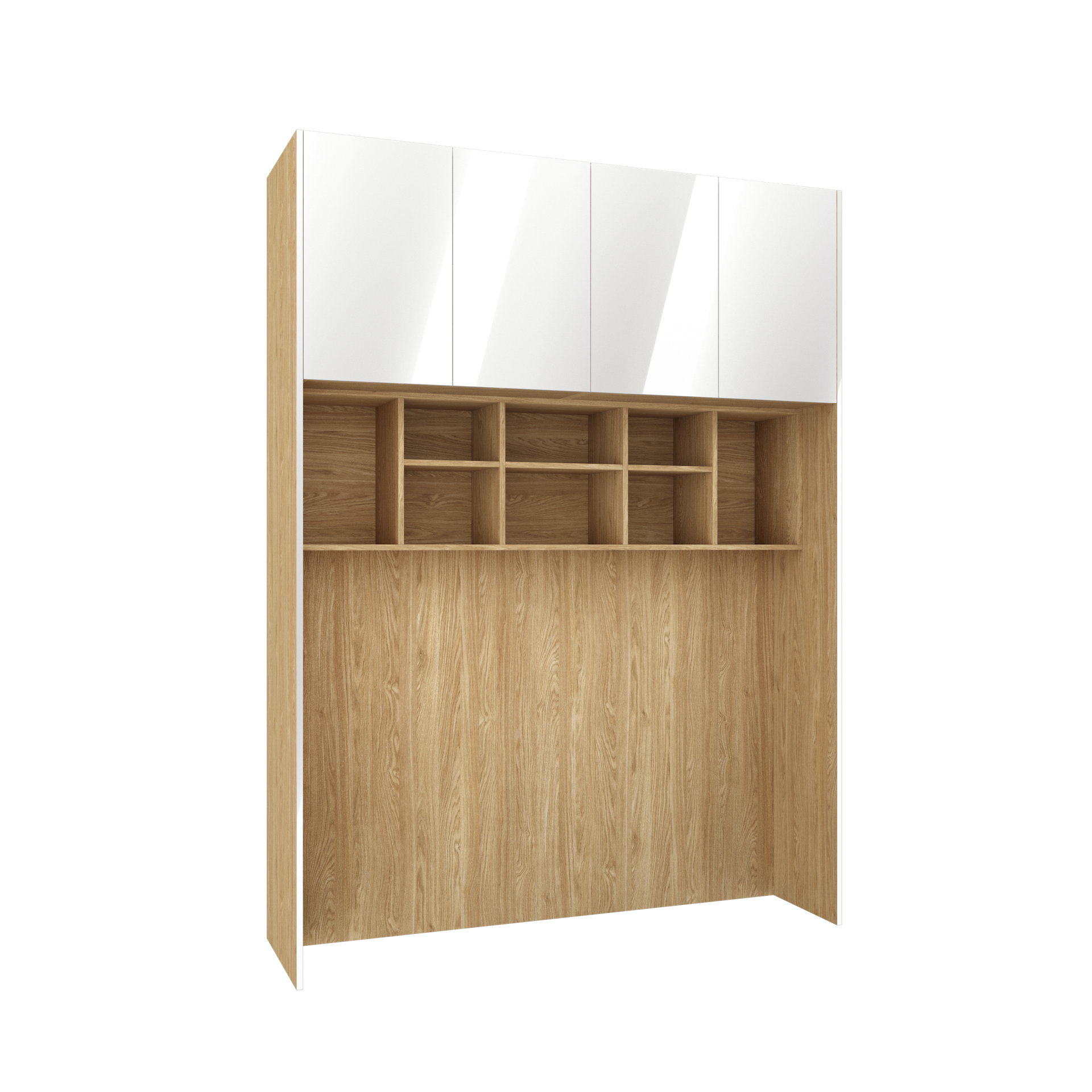 Kolor korpusu/wnętrza: Dąb olejowany / Kolor frontów: biały połysk / Widoczne elementy bazy w kolorze : Dąb olejowany, komody całe białe.