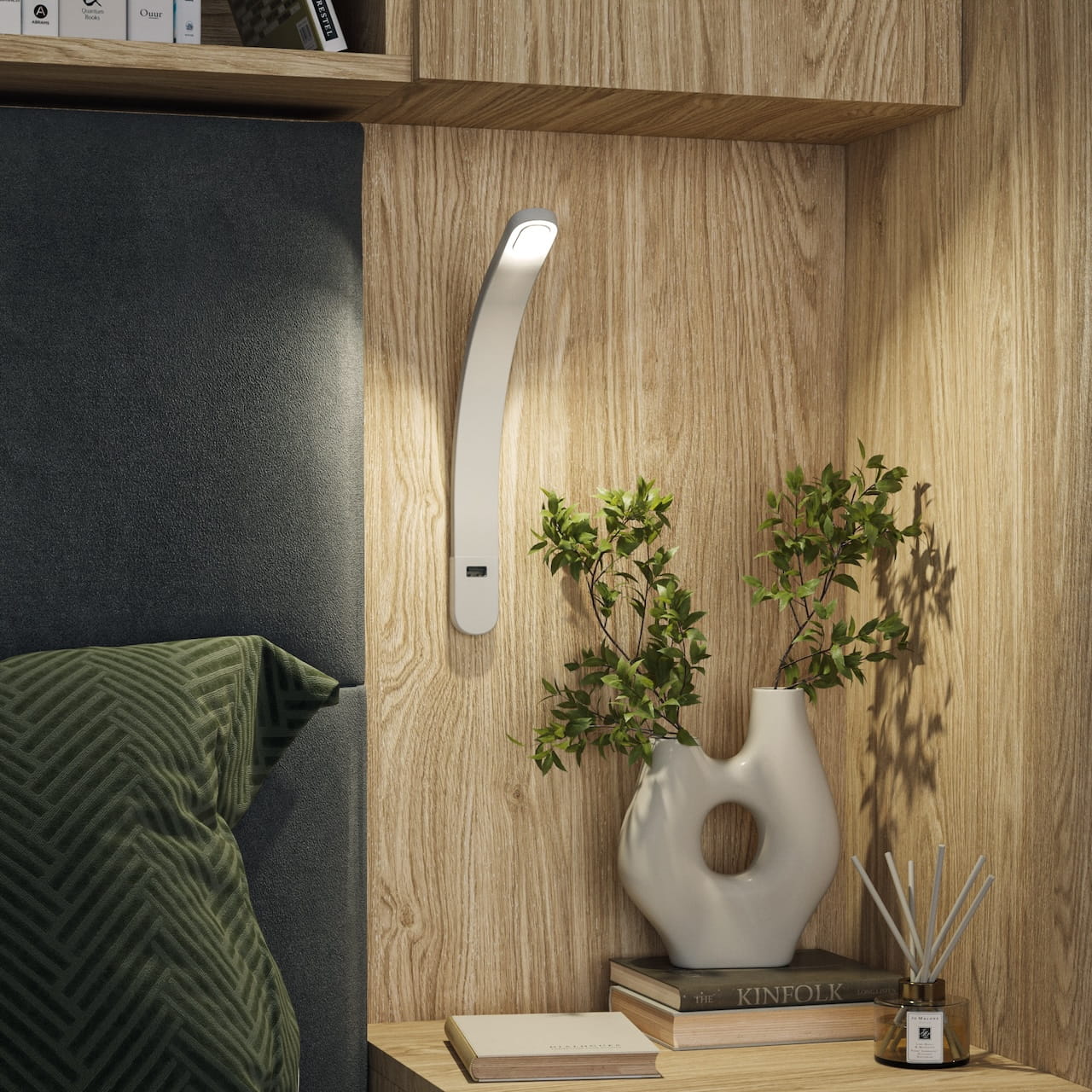 Do bazy ze stolikami polecamy bardzo wygodne lampki nocne flexi, wyginające się w różnych kierunkach, z wejściem USB. To dobre rozwiązanie do czytania i ładowania telefonu.