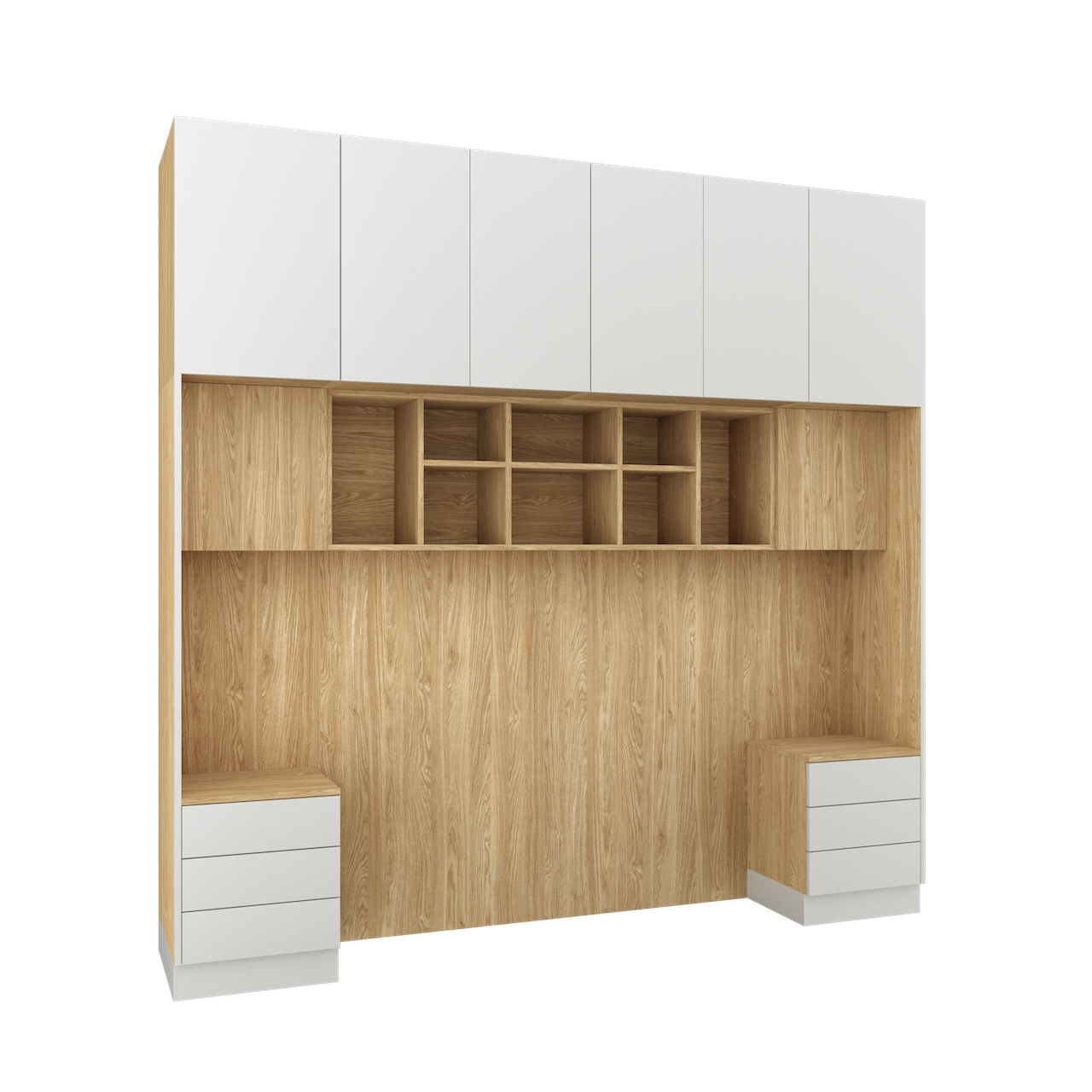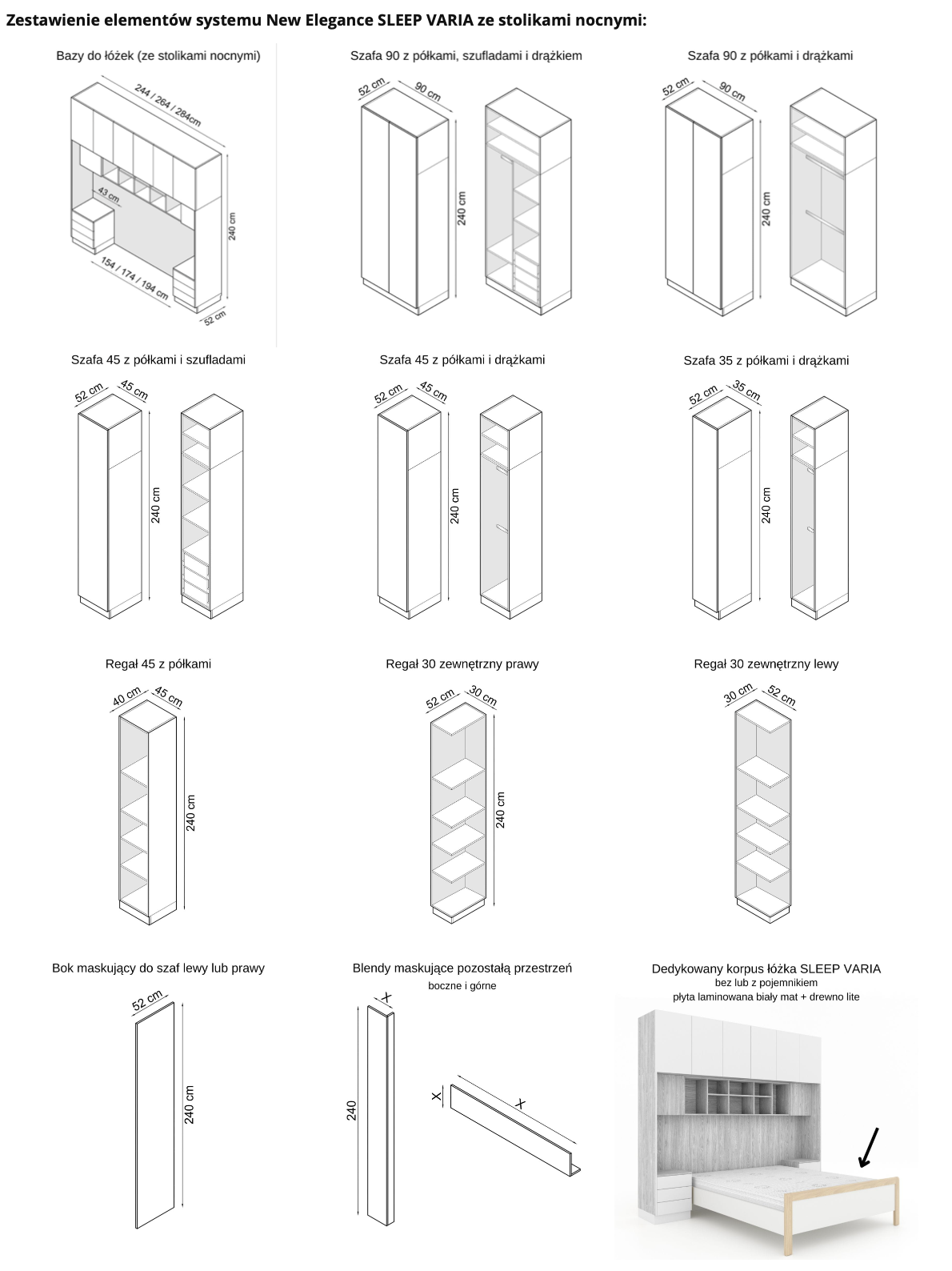 Zabudowa do sypialni SLEEP VARIA z bazą ze stolikami nocnymi oraz z szafami i regałami do wyboru (fronty matowe)
