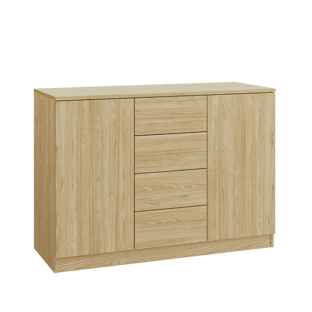 Wariant matowy:Kolor korpusu/wnętrza: Dąb olejowany / Kolor frontów: biały mat, dąb olejowany lub grafit / Widoczne elementy bazy w kolorze : Dąb olejowany. Komody całe białe, dąb olejowany lub grafitowe