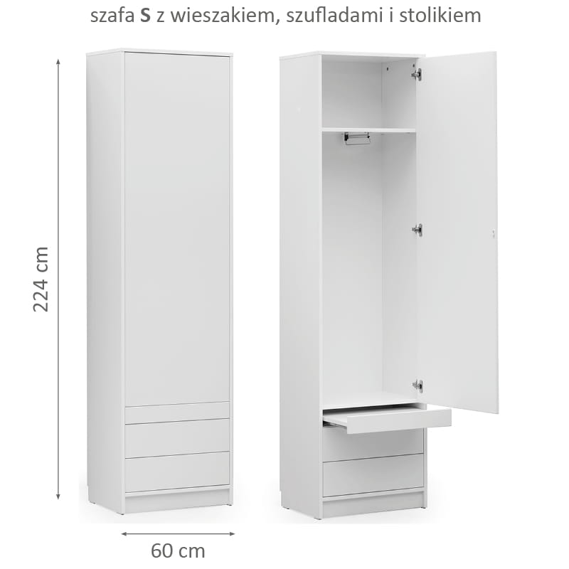 Szafa Basic "S" szer. 60 cm z wieszakiem, szufladami i półką (kolor do wyboru) dedykowana do półkotapczanów Basic