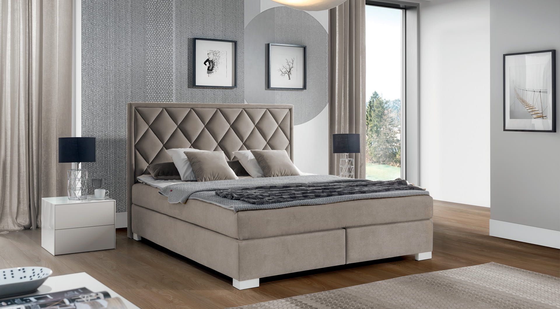 Łóżko KONTYNENTALNE z wezgłowiem 402 o wysokości 125 cm