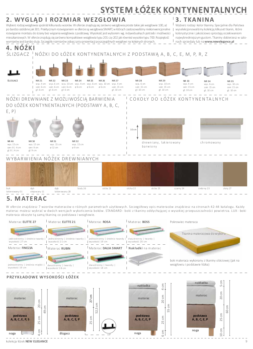 Istotnym czynnikiem budowy każdego łóżka kontynentalnego jest sposób wykończenia jego postumentu. Proponujemy w tym zakresie dwa rozwiązania: poprzez zastosowanie w pełni obudowanego cokołu, lub z wykorzystaniem nogi zapewniającej prześwit pomiędzy podłogą a podstawą,oferta Nogi do łóżek kontynentalnych
